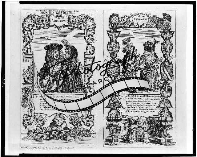 The twelve months represented by Lilliputian figures,British Cartoon,January
