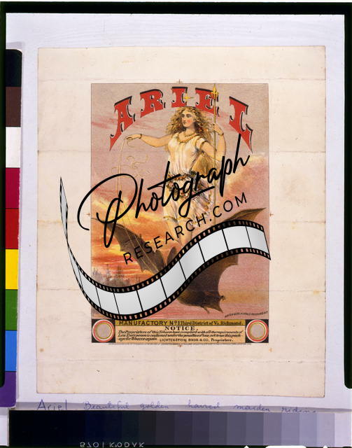 Photo of Tobacco Label,Ariel,Woman riding on Bat,Lichtenstein Brothers & Co