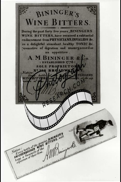 Photo of Patent Medicine Label,Bininger's Wine Bitters,c1859,New York,Broadway