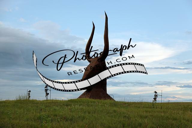 Located just off Interstate 90 in the South Dakota Drift Prairie, about 25 miles west of Sioux Falls. Many of the sculptures, in the style of industrial art, were made with scrap metal, old farm equipment, or railroad tie plates.