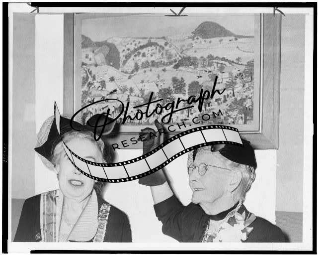 Grandma Moses donating her painting,Mrs. George Kuhner,Battle of Bennington,1953