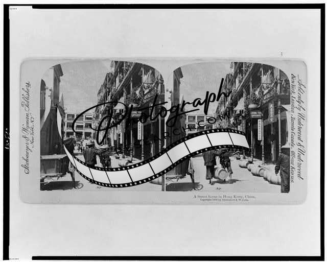 Photo of Stereograph,Street Scene,Hong Kong,China,c1896,Shops,People