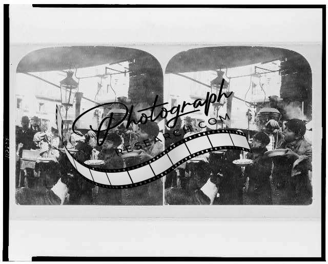 Photo of Stereograph,Street Macaroni Restaurant,Naples,Italy,Boys,Pasta,c1901