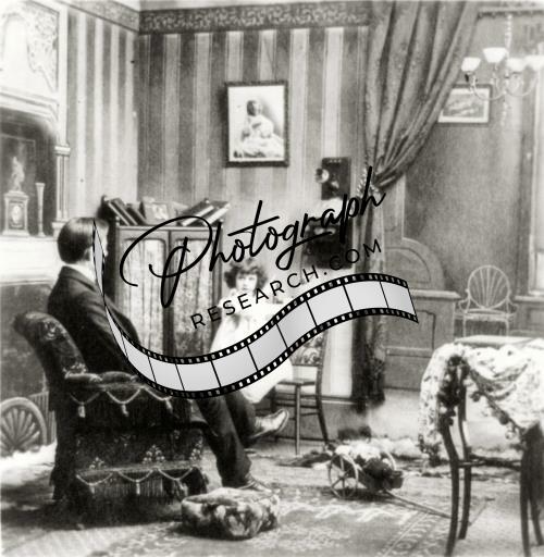 Illustration to popular song,'Hello Central,give me Heaven',1901,child,telephone
