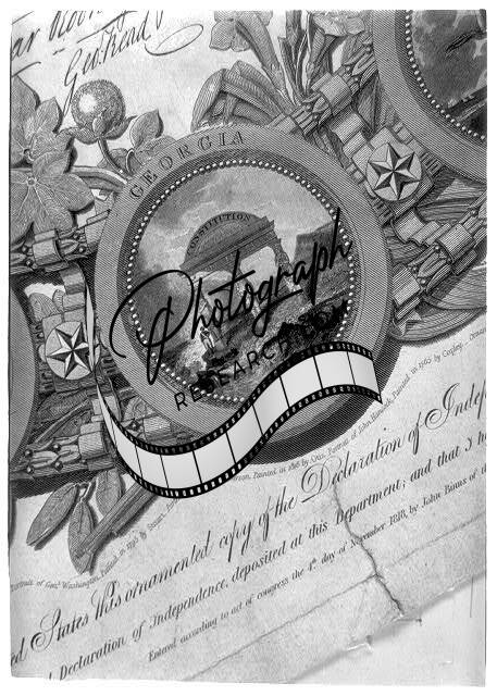 Engraving by Geo. Murray, details from the engraving of the Declaration of Independence; published by John Binns.