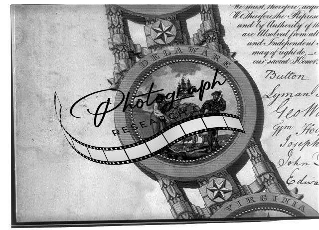 Engraving by Geo. Murray, details from the engraving of the Declaration of Independence; published by John Binns.