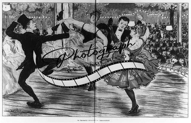 La Quadrille Naturaliste aux Ambassadeurs,couples,lively dance on stage,1886