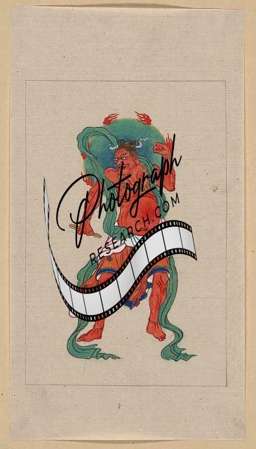 Mythological Buddhist,Hindu figure,long green sash,flaming halo behind head,1878 1