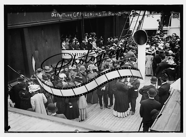 Departure of pilgrims to Rome,crowd at boat docks,New York,NY,1909,women,men