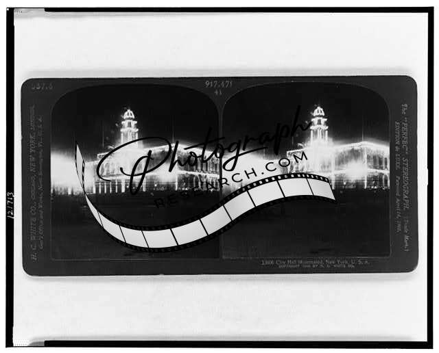 Photo of Stereograph,City Hall Illuminated,New York,NY,c1909,Trimmed in Lights