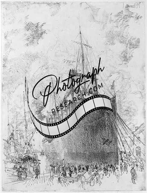 Photo of The collier,Ship at crowded dock,1880-1926,Joseph Pennell