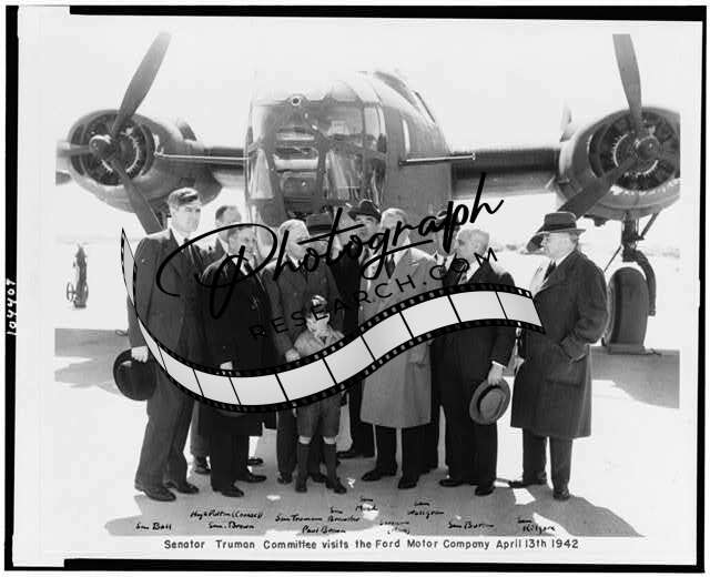 Senator H Truman committee visits,Ford Motor Company,legislators,airplane,1942
