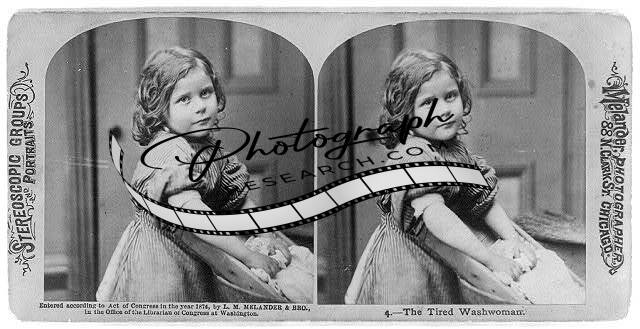 Photo of Stereograph,The Tired Wash Woman,Child,Laundry,c1874,Domestic Life