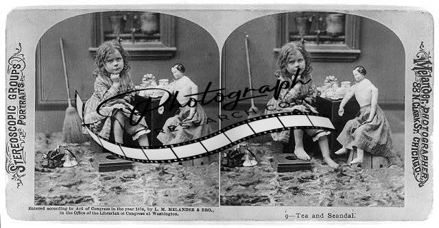 Photo of Stereograph,Tea,Seandal,Girl,play,tea set,Broom,Doll,Children at Play
