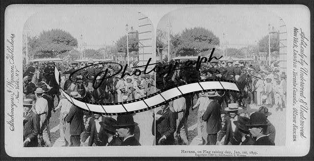 Photo of Stereograph,Havana,Cuba,Flag Raising Day,1899,U.S. Soldiers,Cubans