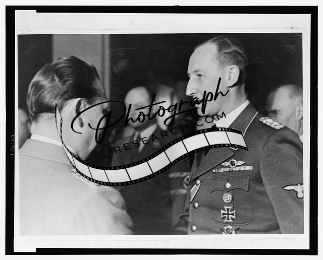 Reichsmarshall's birthday. Luftwaffe, ministers, Reichsleiter, and government secretaries, shows Reinhard Heydrich speaking with Hermann Göring at Göring's birthday celebration.