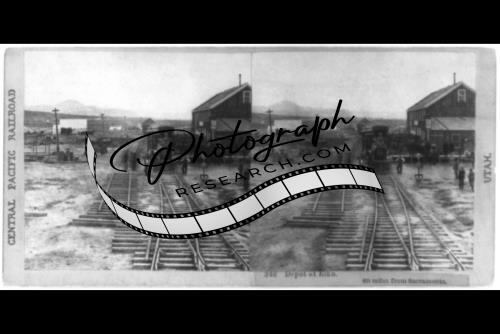 Photo of Stereograph,Depot,Elko,Utah,UT,Railroad Station,RR,c1865,Alfred Hart