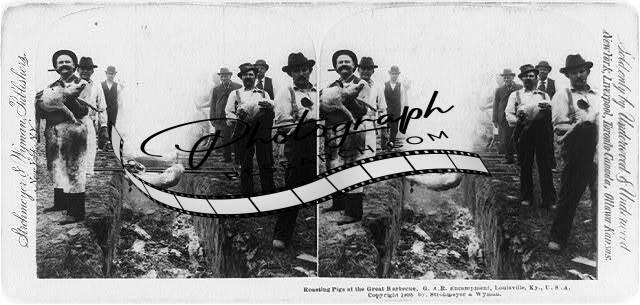 Photo of Stereograph,Roasting Pigs,Great Barbeque,BBQ,G.A.R. Encampment,Kentucky
