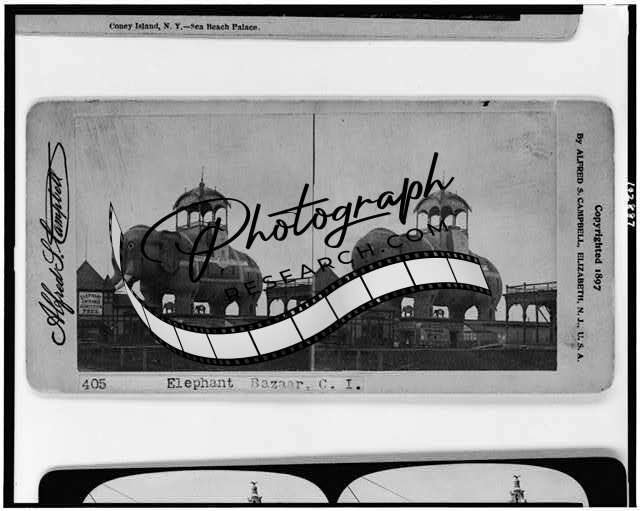 Photo of Stereograph,Elephant Bazaar,Coney Island,New York,Amusement Park,c1897