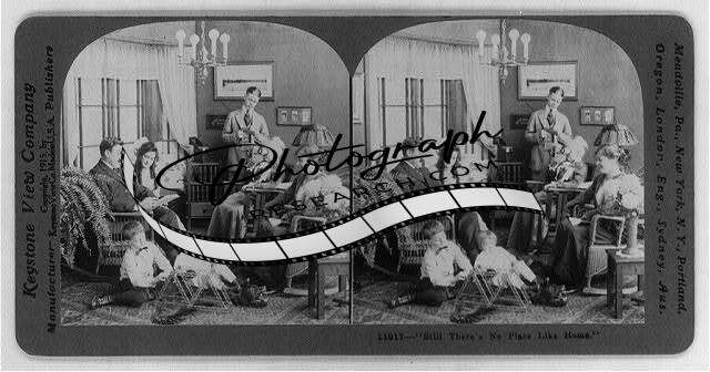 Photo of Stereograph,Still There's No Place Like Home,c1915,Family Reading,Kids