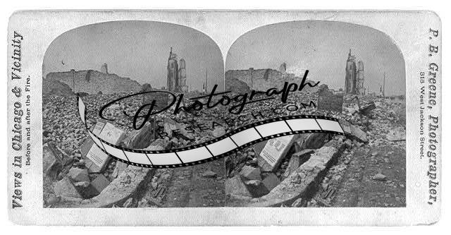 Photo of Stereograph,Ruins,Great Fire,Chicago,Illinois,Sherman House,1871 1