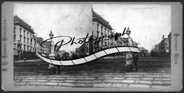 Photo of Stereograph,Street Scene,Detroit,Michigan,Lamp,Water Fountain,c1870