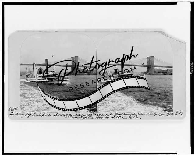 Photo of Stereograph,Looking up East River,Brooklyn Bridge,Suspension Bridge,NY
