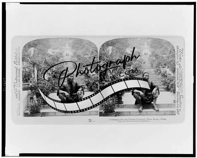 Photo of Stereograph,Parsee Cemetery,Hong Kong,China,Potted Plants,Man,Stairs