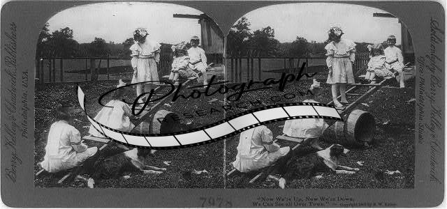 Photo of Stereograph,Children Playing Outdoors,Seesaws,Barrel,c1906,See All Over