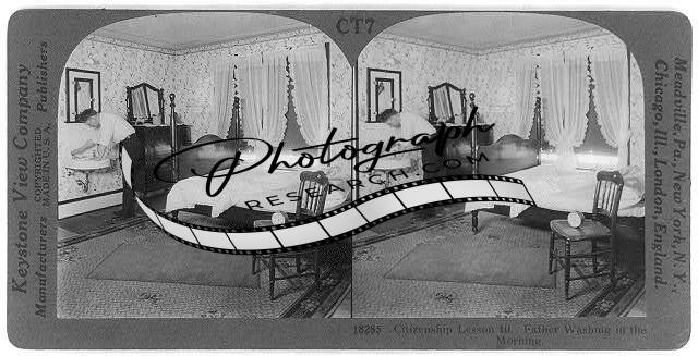 Photo of Stereograph,Citizenship Lessons,Father washing in the Morning,c1929