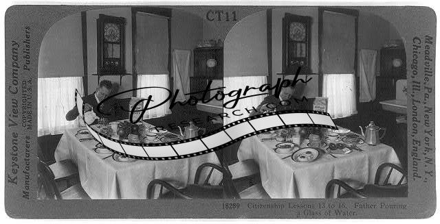 Photo of Stereograph,Citizenship Lessons,Father pouring a glass of water,c1929
