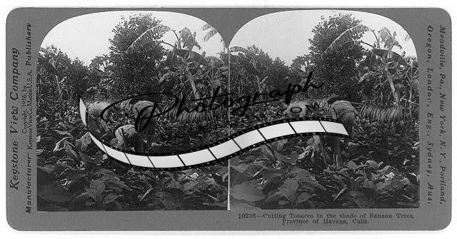 Photo of Stereograph,Cutting Tobacco,Banana Trees,Havana,Cuba,c1916