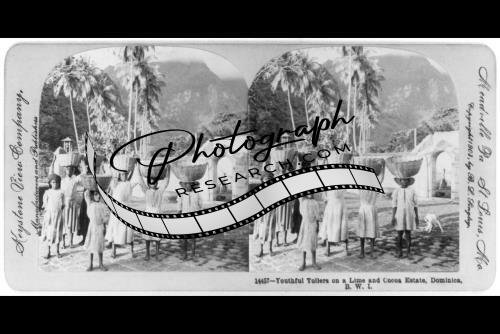 Photo of Stereograph,Youthful Toilers,Lime & Cocoa Estate,Dominica,West Indies