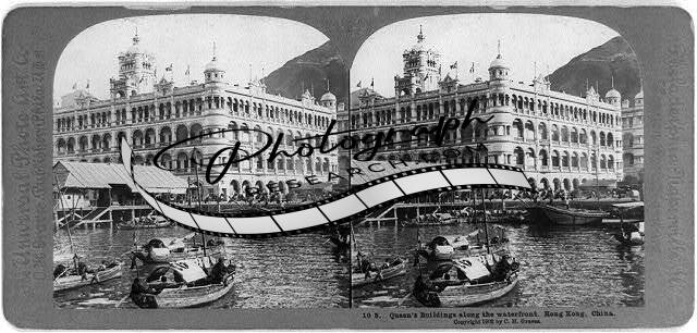 Photo of Stereograph,Queen's Buildings,Waterfront,Hong Kong,China,c1902