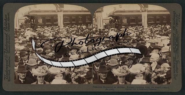 Photo of Stereograph,President Theodore Roosevelt,Abilene,Kansas,Train,c1903