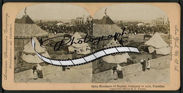 Photo of Stereograph,Spice Merchants of Baghdad,Company at Acre,Palestine,c1901