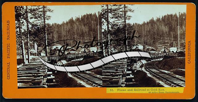 Photo of Stereograph,Flume,Railroad,Gold Run,California,c1865,Alfred Hart