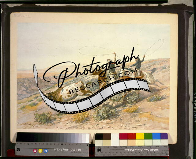 Buccaroos,Cowboys roping a steer,c1905,Charles M Russell,Great Plains,Horses