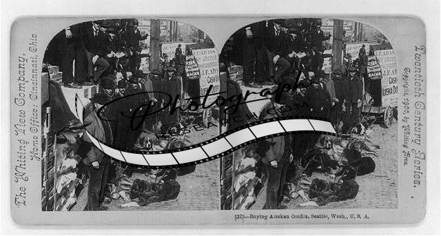 Photo of Stereograph,Buying Alaskan Outfits,Seattle,Washington,Dog Team,c1900
