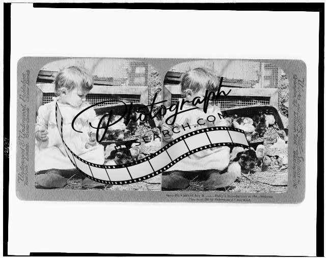 Photo of Stereograph,He's Afraid they'll bite,Chickens,Children,1905,Baby Chicks