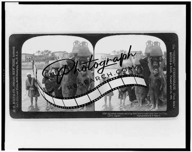 Egyptian Women carrying their heavy water jars,Nile,Cairo,Egypt,c1908,Pitchers
