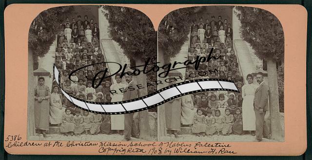 Photo of Stereograph,Children,Christian Mission School,Nablus,Palestine,c1903
