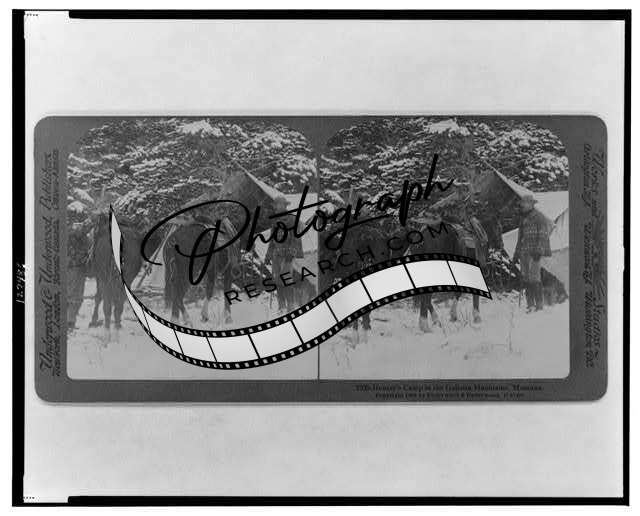 Hunter's camp in the Gallatin Mountains,Montana,MT,1906,snow,horses,Reproduction