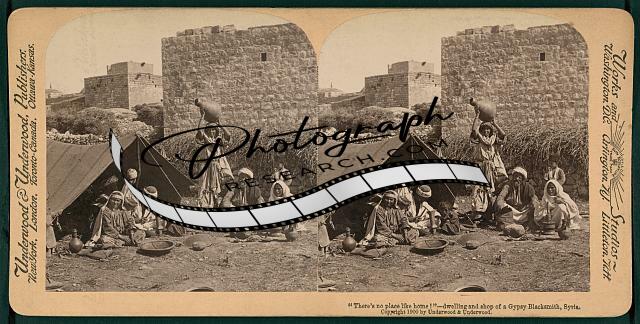 Photo of Stereograph,There's No Place Like Home,Dwelling,Gypsy Blacksmith,Syria