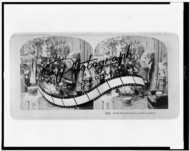 Photo of Stereograph,Santa Claus telephoning for supplies,c1897,Christmas,Xmas