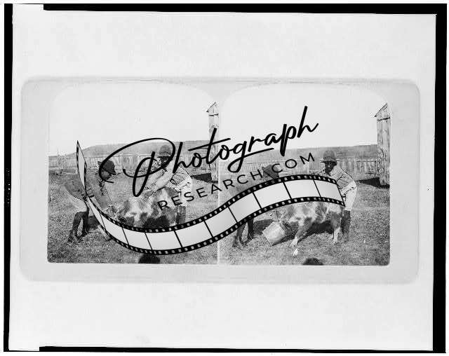Photo of Stereograph,African American Children feeding hog,Pigs,Country Life