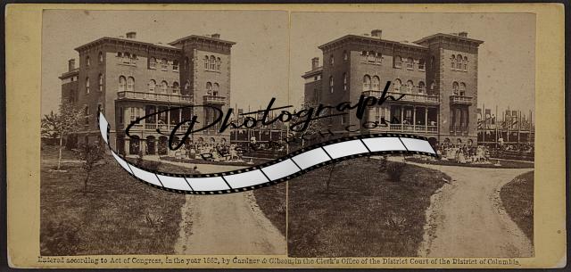 Photo of Stereograph,Unidentified Building,Girl's School,Balcony,c1862,Workmen