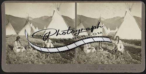 Photo of Stereograph,Starting Supper,Flathead Reservation,Indians,Tepees,c1908