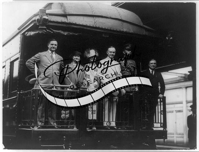 President Coolidge,wife,Grace Goodhue Coolidge,People on back of Train,c1925