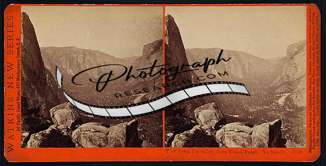 Photo of Stereograph,View down valley,Union Point,Yosemite,Mariposa County,1879